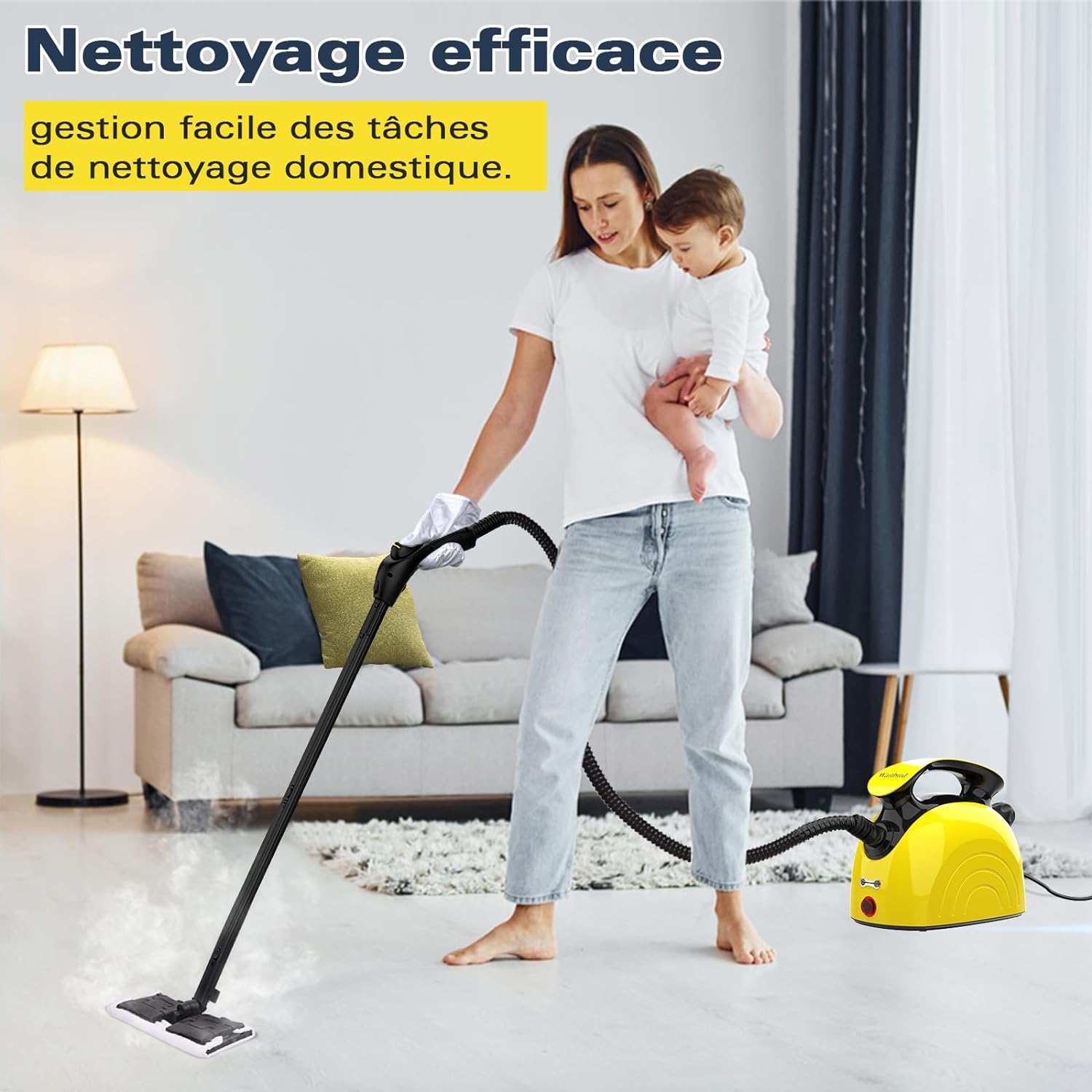 - 💎【Versatile and Thorough Cleaning】: Our steam cleaner meets all your daily cleaning needs. It's effective on tiles, carpets, crevices, granite, sealed parquet, laminate flooring, appliances, kitchen hoods, windows, mirrors, greasy grills, upholstery, and even cars. Its eco-friendly and safe solution promotes a healthy and comfortable lifestyle for you and your family.
