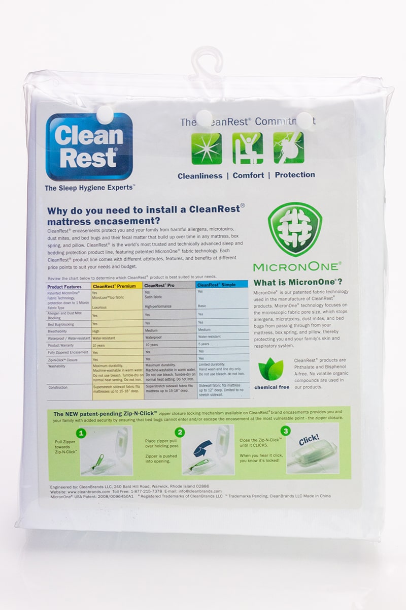 The Clean Rest® Pro 140x200 bed bug mattress cover for a double mattress includes several certified patented systems , notably a technology that allows blocking all types of allergens responsible for skin itching: MicronOne® fabric .
